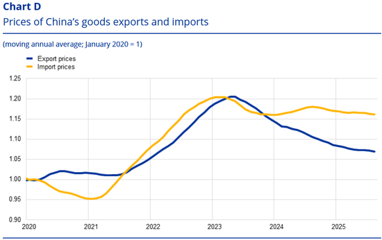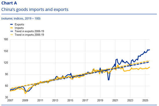 来源:中国国家统计局、贸易数据监测和欧洲央行工作人员计算。